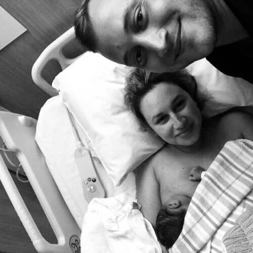 “I had my first surge around 9.30pm on Tuesday evening but thought it was intense Braxton Hicks. My husband and I went to bed shortly after and the surges started taking place every hour which is when I thought “hmm I think I’m in actual labour”. Luke and I managed to rest/sleep through until 4.30am and that’s when I went into active labour. I laboured at home in and out of the shower using my HypnoBirthing breathing techniques to get me through. We then made our way to the hospital at 10am, I had 5 surges in the 20 minute car ride to hospital. We walked through to the birthing suite where the midwife who I spoke to on the phone greeted us and said “ok yes you’re definitely in active labour” which I knew I was! I was 7cm dilated when I arrived which was amazing to hear. I laboured in and out of the shower, once again changing positions regularly and swaying my hips from side to side with Luke supporting me.
